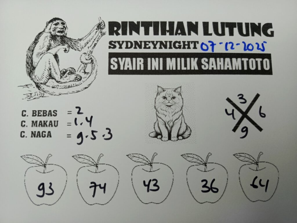 Syair Rintihan Lutung Sydney Night Hari ini Minggu 07 Desember 2025