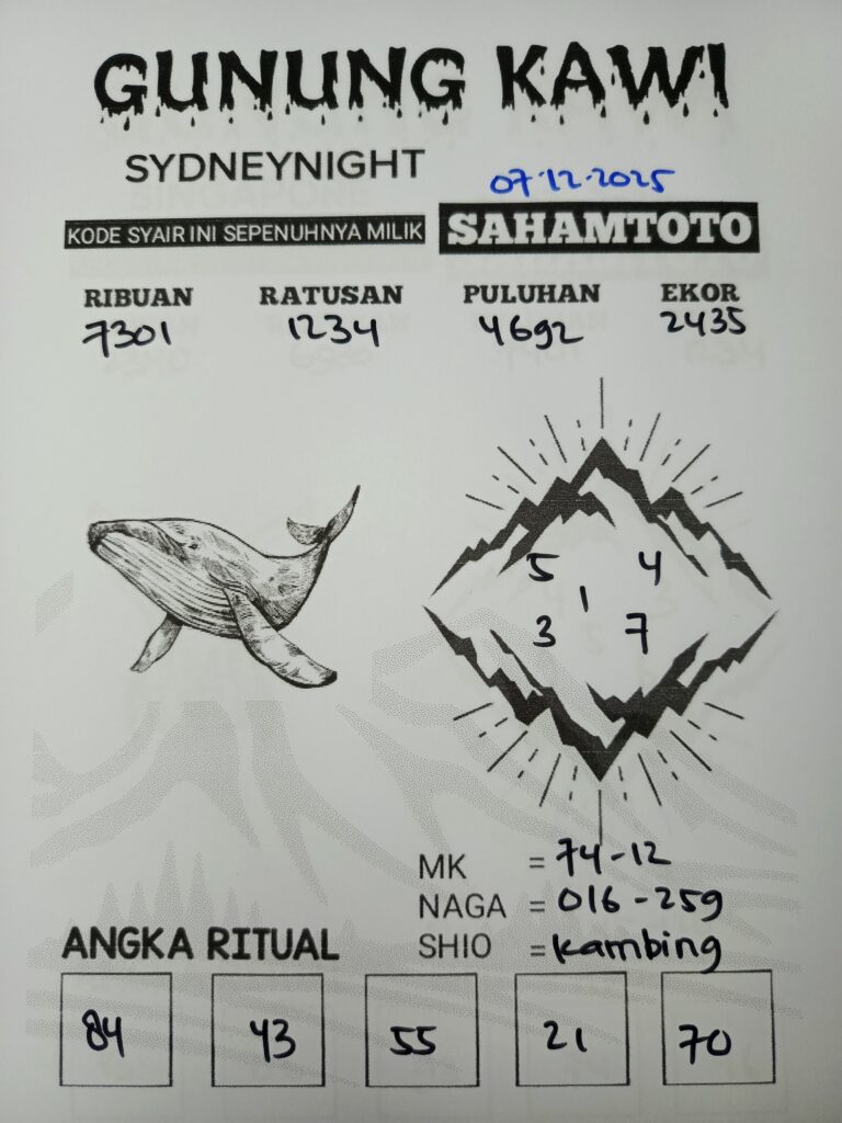Syair Gunung Kawi Sydney Night Hari ini Minggu 07 Desember 2025