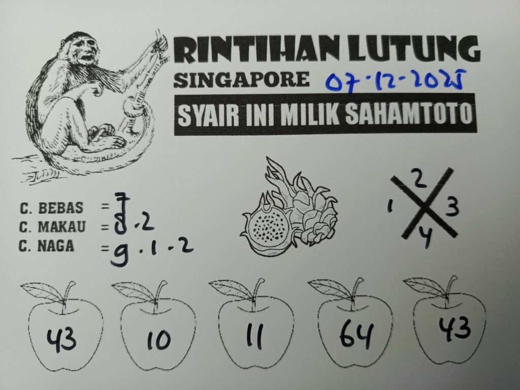 Syair Rintihan Lutung Singapore Pools Hari ini Minggu 07 Desember 2025