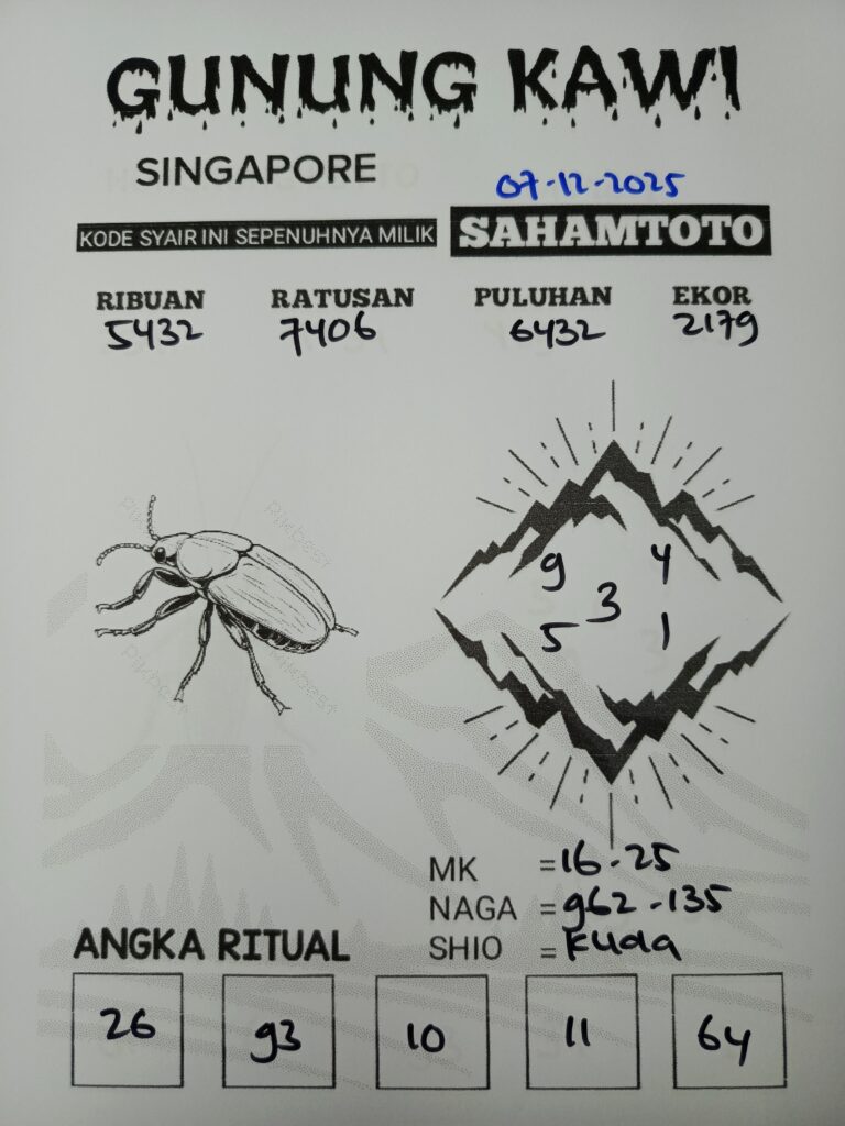 Syair Gunung Kawi Singapore Pools Hari ini Minggu 07 Desember 2025