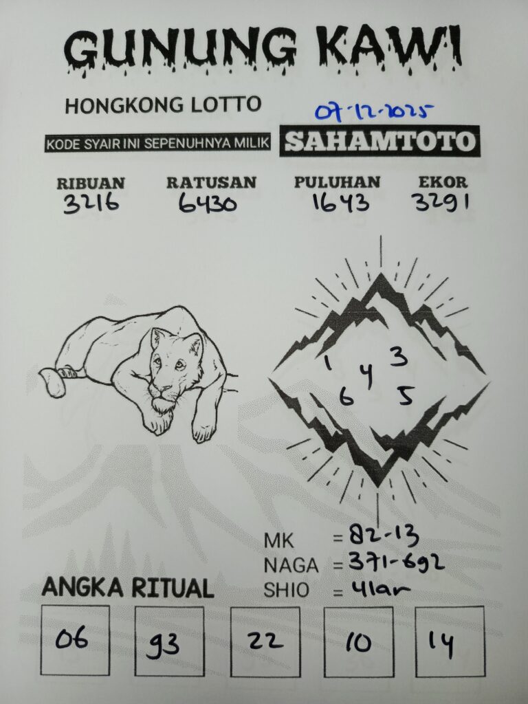 Syair Gunung Kawi Hongkong Lotto Hari ini Minggu 07 Desember 2025
