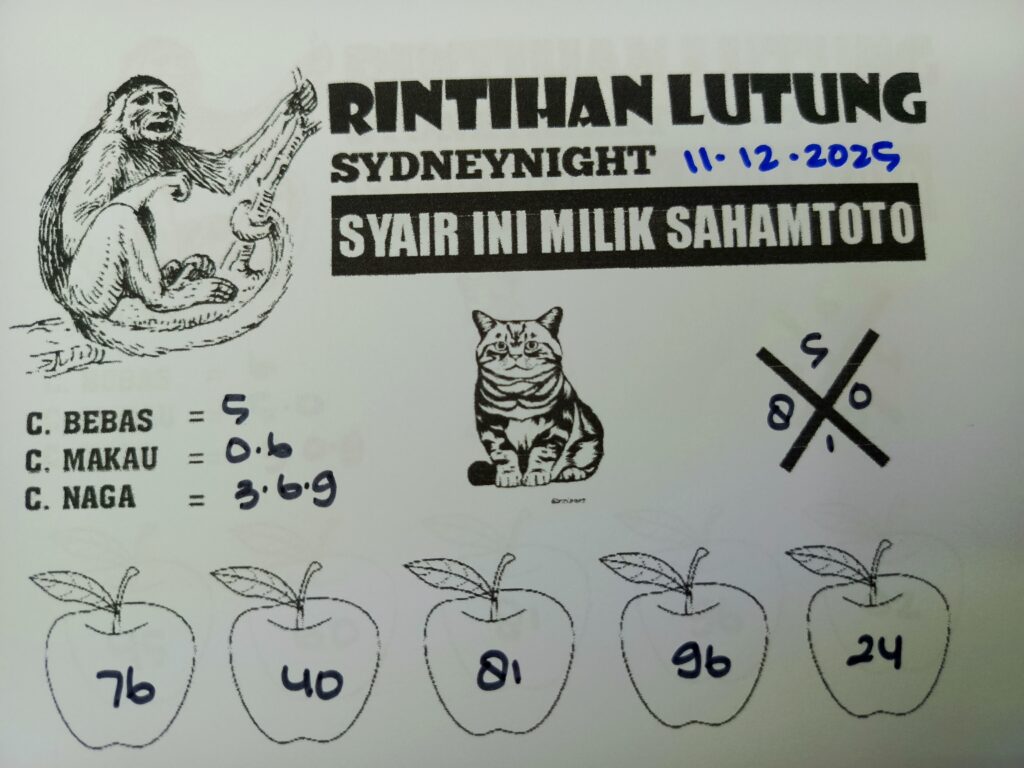 Syair Rintihan Lutung Sydney Night Hari ini Kamis 11 Desember 2025