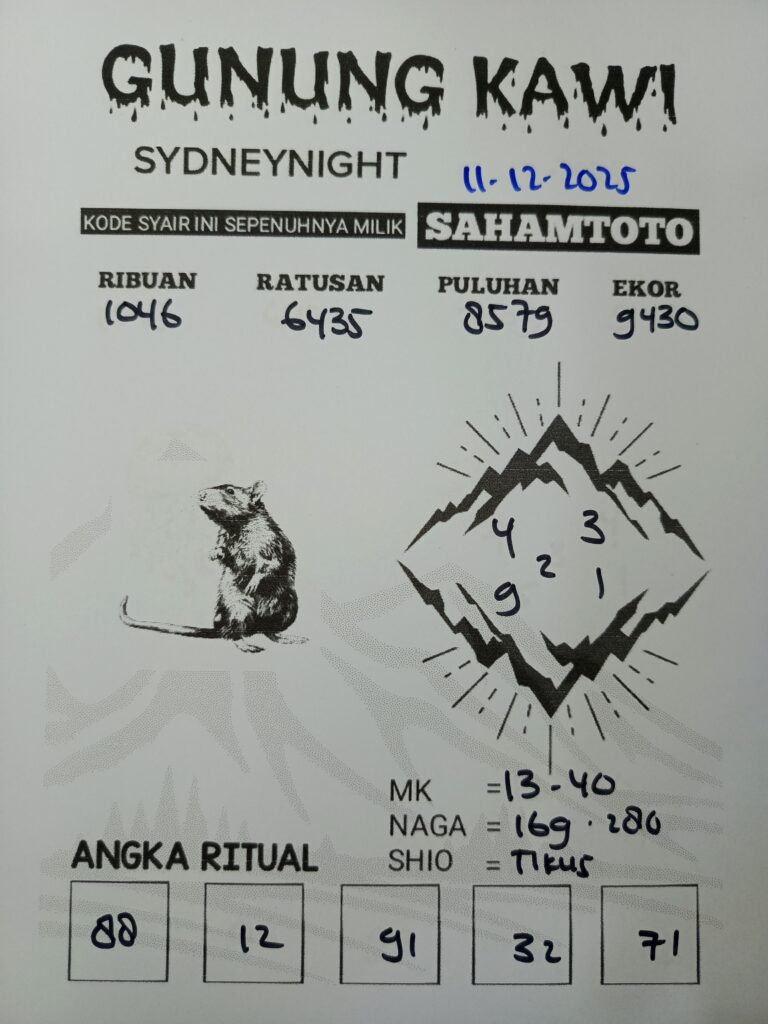 Syair Gunung Kawi Sydney Night Hari ini Kamis 11 Desember 2025