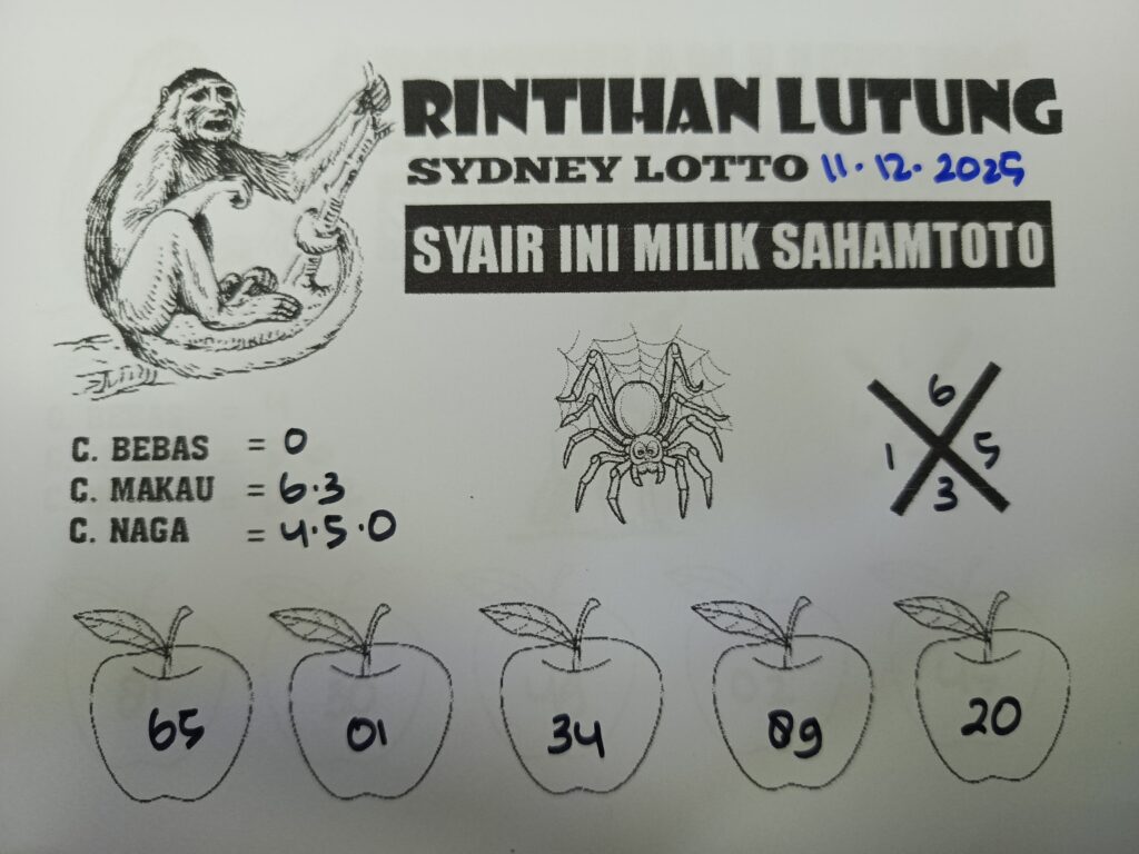 Syair Rintihan Lutung Sydney Lotto Hari ini Kamis 11 Desember 2025