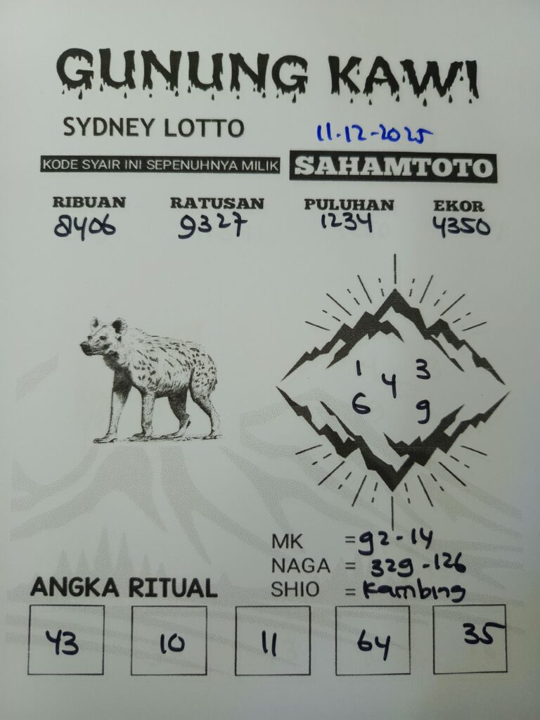 Syair Gunung Kawi Sydney Lotto Hari ini Kamis 11 Desember 2025
