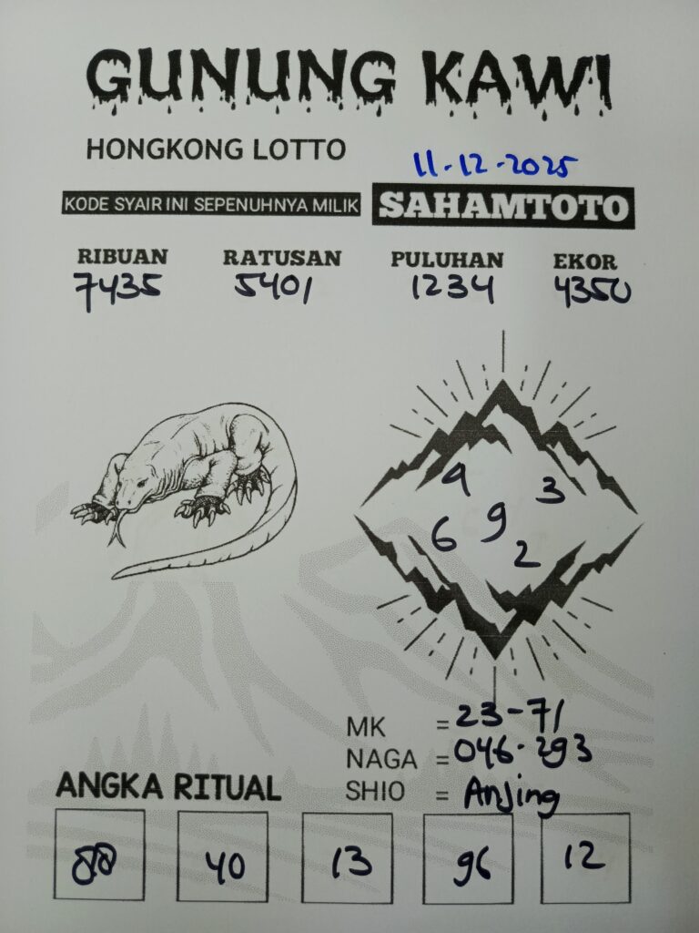 Syair Gunung Kawi Hongkong Lotto Hari ini Kamis 11 Desember 2025
