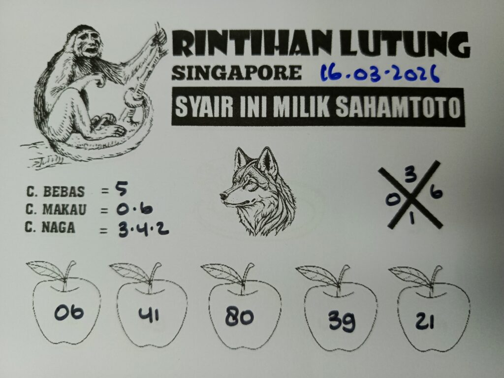Syair Rintihan Lutung Singapore Pools Hari ini Senin 16 Maret 2026