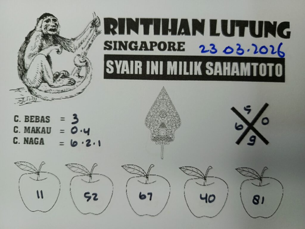 Syair Rintihan Lutung Singapore Pools Hari ini Senin 23 Maret 2026