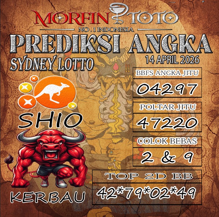 Syair lipan sakti SYDNEY Lotto Hari ini SELASA 14 April 2026