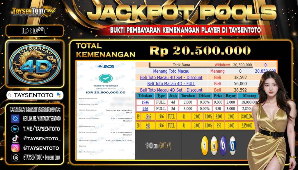 TAYSENTOTO JACKPOT DI PASARAN TOTO MACAU 4D P3 20.500.000 – LUNAS !! ( 15 DESEMBER 2025 ) Selamat Kepada Member Setia TAYSENTOTO Userid : D**T Jackpot di PASARAN TOTO MACAU 4D P3 (TOGEL) RP 20.500.000.- Langsung di Dibayar LUNAS!!