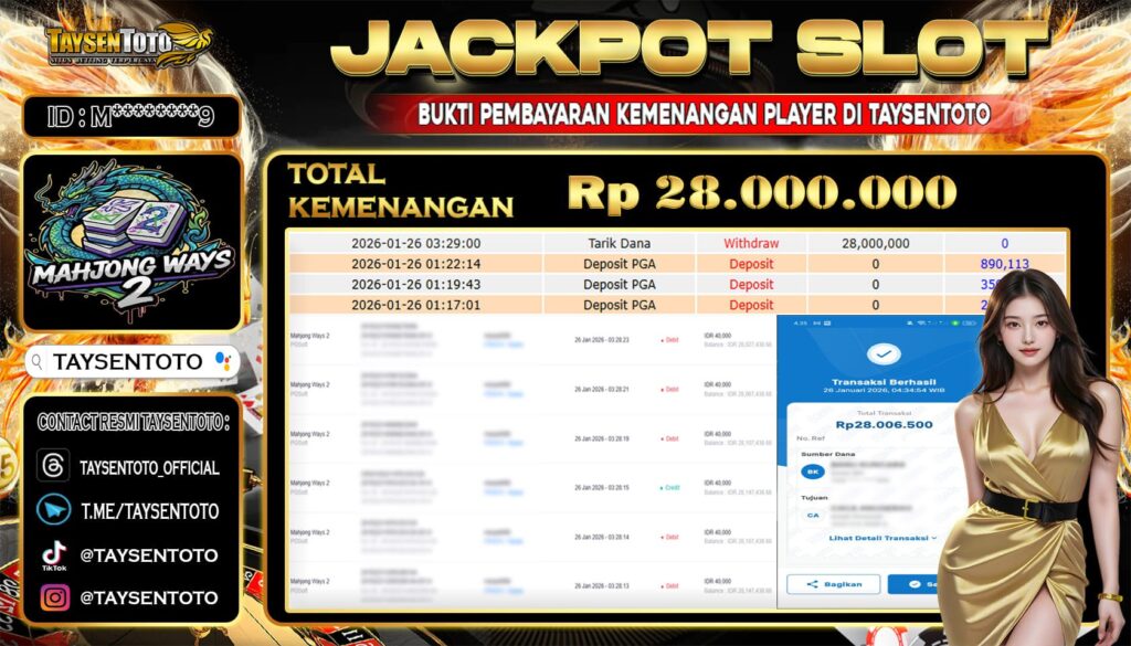 TAYSENTOTO JACKPOT DI PERMAINAN MAHJONG WAYS 2 29.000.000- LUNAS !! ( 12 DESEMBER 2025 ) Selamat Kepada Member Setia TAYSENTOTO Userid : M********9 Jackpot di PERMAINAN MAHJONG WAYS 2 (PGSOFT) RP 29.000.000.- Langsung di Dibayar LUNAS!!