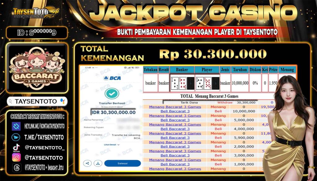 TAYSENTOTO JACKPOT DI PERMAINAN BACCARAT 3 GAMES 15 DESEMBER 2025