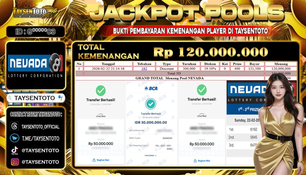 TAYSENTOTO JACKPOT DI PASARAN NEVADA POOLS 12 DESEMBER 2025