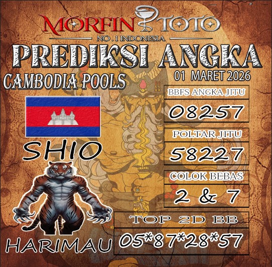 Syair lipan sakti CAMBODIA Pools Hari ini MINGGU 01 MARET 2026