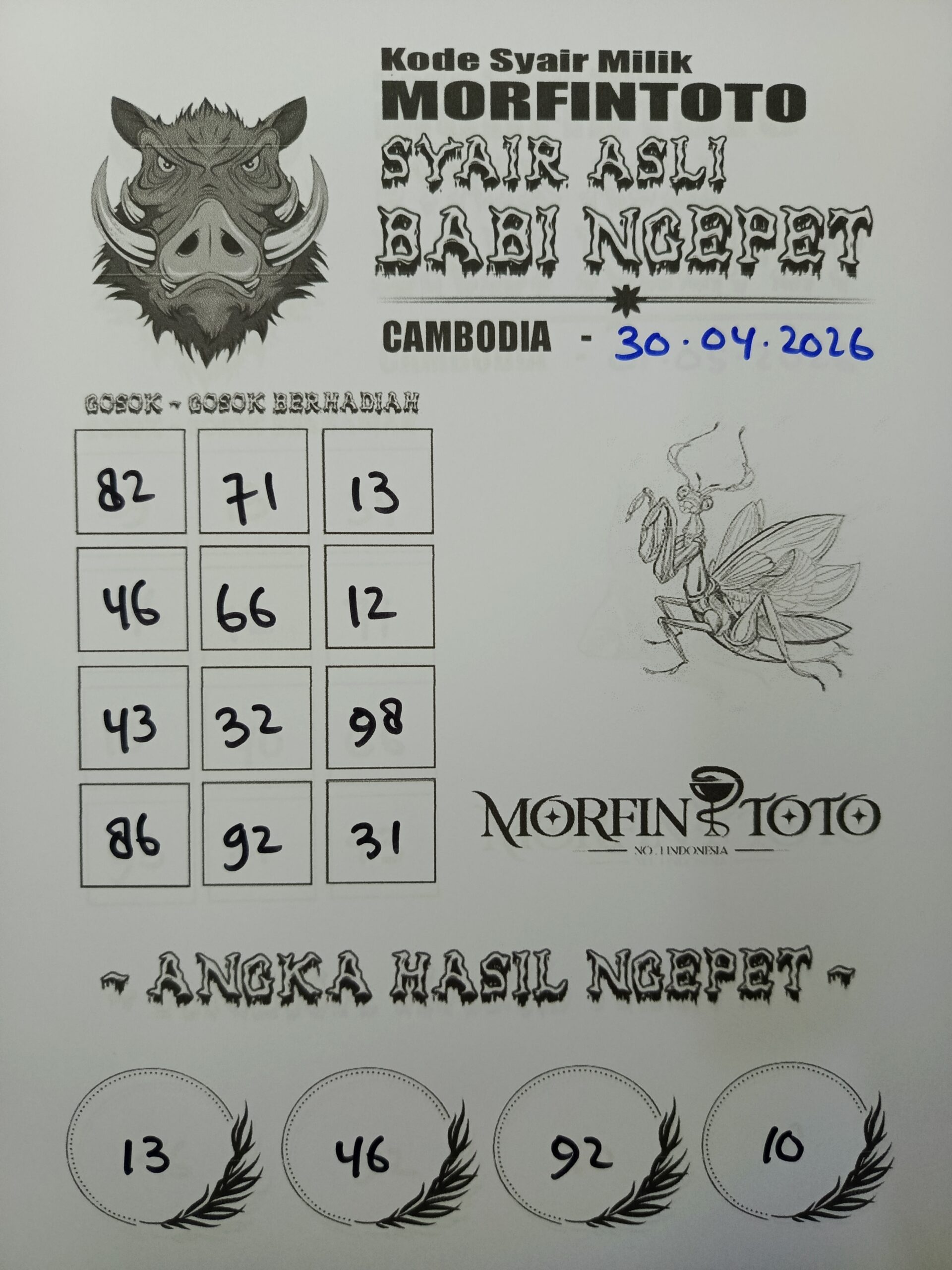 SYAIR TOGEL BABI NGEPET CAMBODIA 30 APRIL 2026