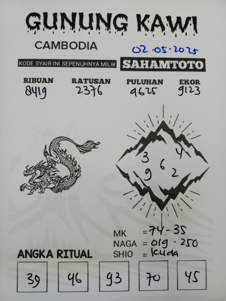 Syair Gunung Kawi Cambodia pools Hari Ini Jumat 02 Mei 2025
