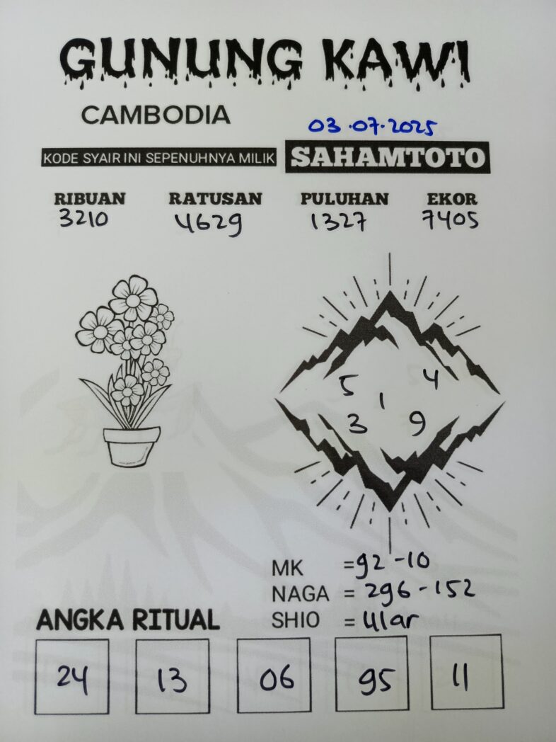 Syair Gunung Kawi Cambodia pools Hari ini Kamis 03 Juli 2025