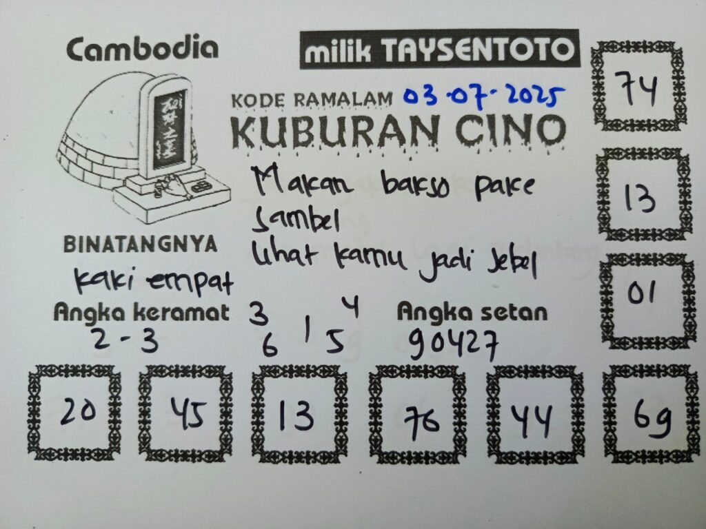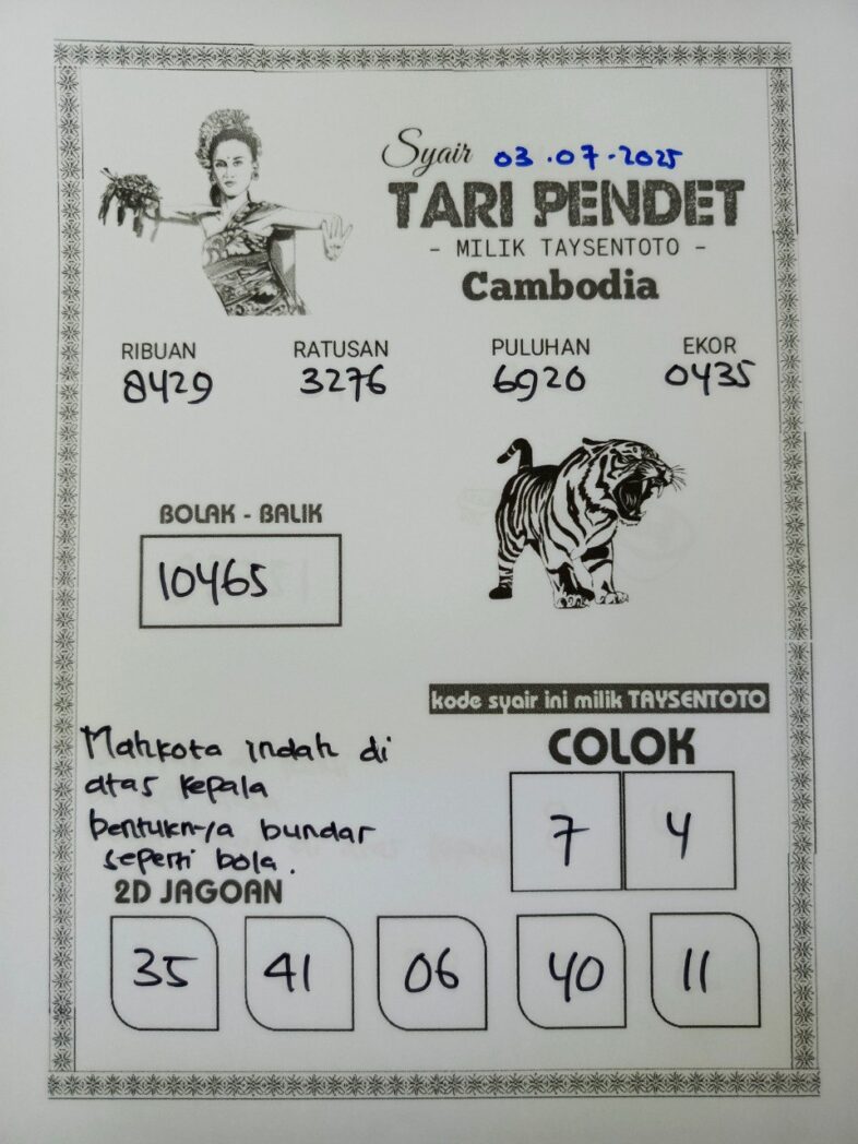 SYAIR TAYSEN CAMBODIA– Selamat datang di Situs Prediksi Togel Jitu dan Terpercaya. Hari ini kita akan mengulas Syair Togel Cambodia 03 Juli 2025. Syair Cambodia ini semata-mata hanya dibuat untuk membantu mempermudah para pemain toto gelap online dalam menebak secara tepat Angka Keluaran Cambodia.