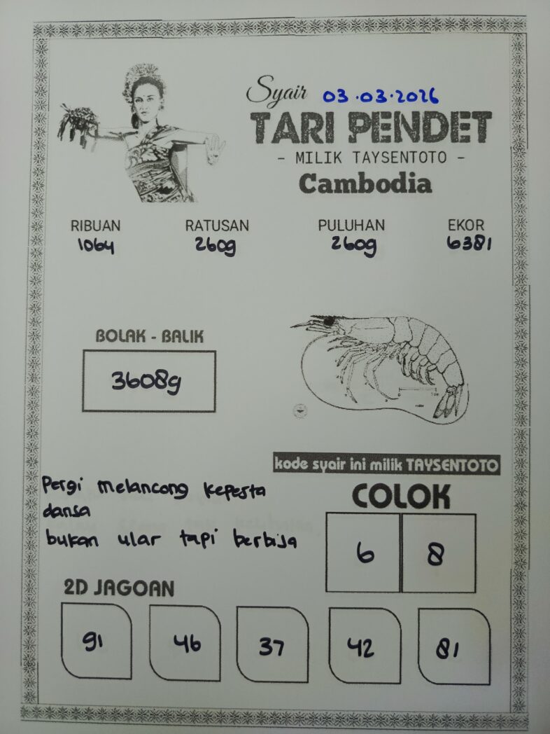 Syair Tari Pendet Cambodia Hari Ini Selasa, 03 Maret 2026