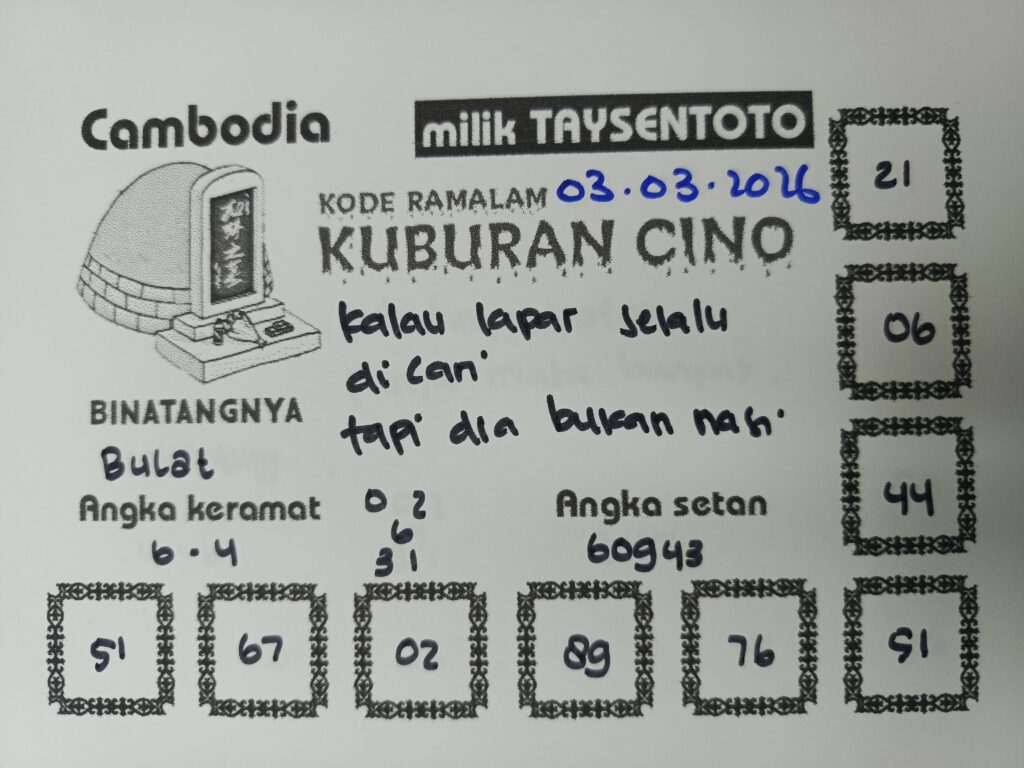 SYAIR TAYSEN CAMBODIA– Selamat datang di Situs Prediksi Togel Jitu dan Terpercaya. Hari ini kita akan mengulas Syair Togel Cambodia 03 Maret 2026. Syair Cambodia ini semata-mata hanya dibuat untuk membantu mempermudah para pemain toto gelap online dalam menebak secara tepat Angka Keluaran Cambodia.