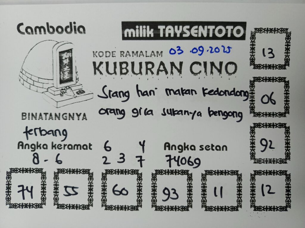 Syair Kuburan Cino Cambodia Hari Ini Rabu, 03 September 2025