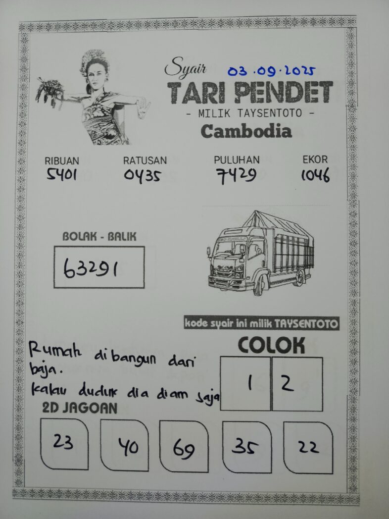 Syair Tari Pendet Cambodia Hari Ini Rabu, 03 September 2025