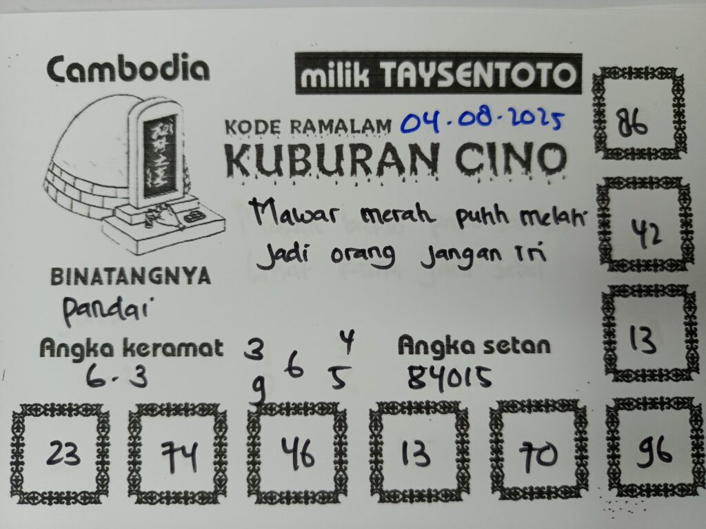 SYAIR TAYSEN CAMBODIA– Selamat datang di Situs Prediksi Togel Jitu dan Terpercaya. Hari ini kita akan mengulas Syair Togel Cambodia 04 Agustus 2025. Syair Cambodia ini semata-mata hanya dibuat untuk membantu mempermudah para pemain toto gelap online dalam menebak secara tepat Angka Keluaran Cambodia.