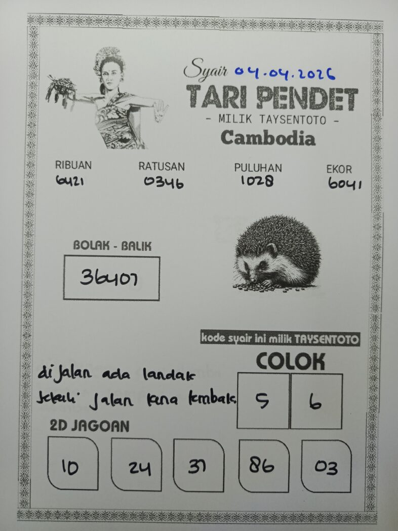 Syair Tari Pendet Cambodia Hari Ini Sabtu, 04 April 2026