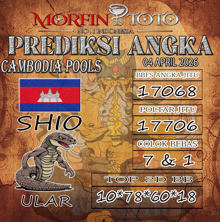 Syair lipan sakti CAMBODIA Pools Hari ini Sabtu, 04 April 2026