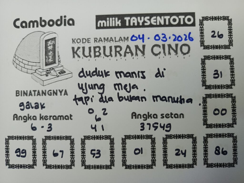 Syair Kuburan Cino Cambodia Hari Ini Rabu, 04 Maret 2026