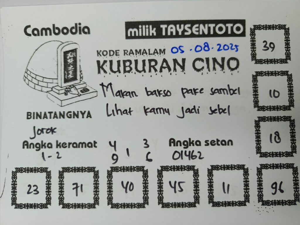 SYAIR TAYSEN CAMBODIA– Selamat datang di Situs Prediksi Togel Jitu dan Terpercaya. Hari ini kita akan mengulas Syair Togel Cambodia 05 Agustus 2025. Syair Cambodia ini semata-mata hanya dibuat untuk membantu mempermudah para pemain toto gelap online dalam menebak secara tepat Angka Keluaran Cambodia.
