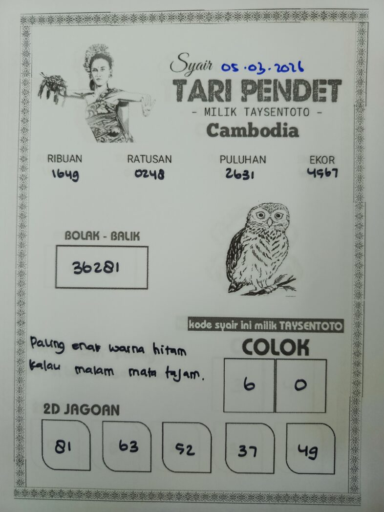 Syair Tari Pendet Cambodia Hari Ini Kamis, 05 Maret 2026