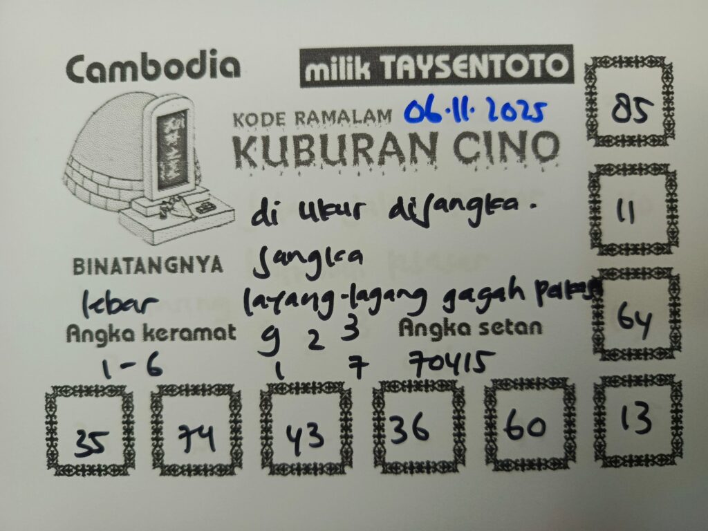 Syair Kuburan Cino Cambodia Hari Ini Kamis, 06 November 2025