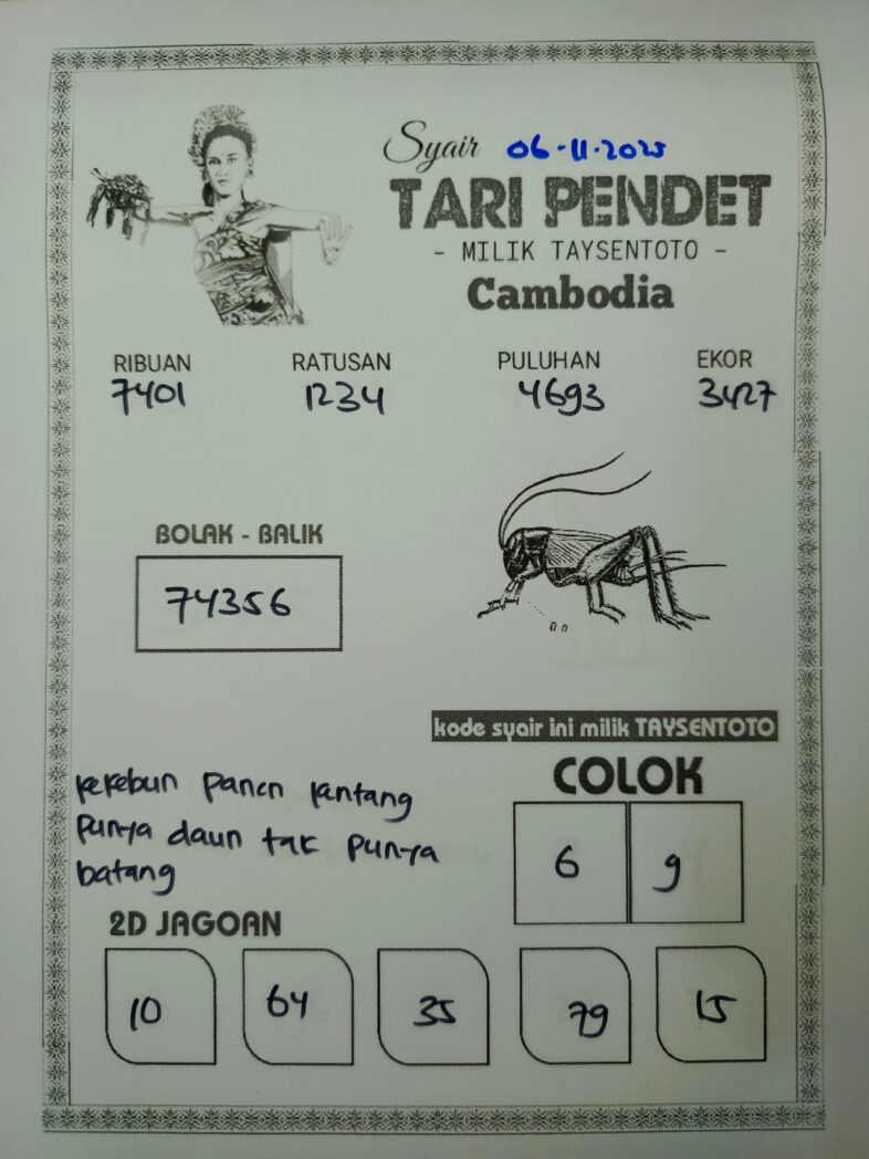 Syair Tari Pendet Cambodia Hari Ini Kamis, 06 November 2025