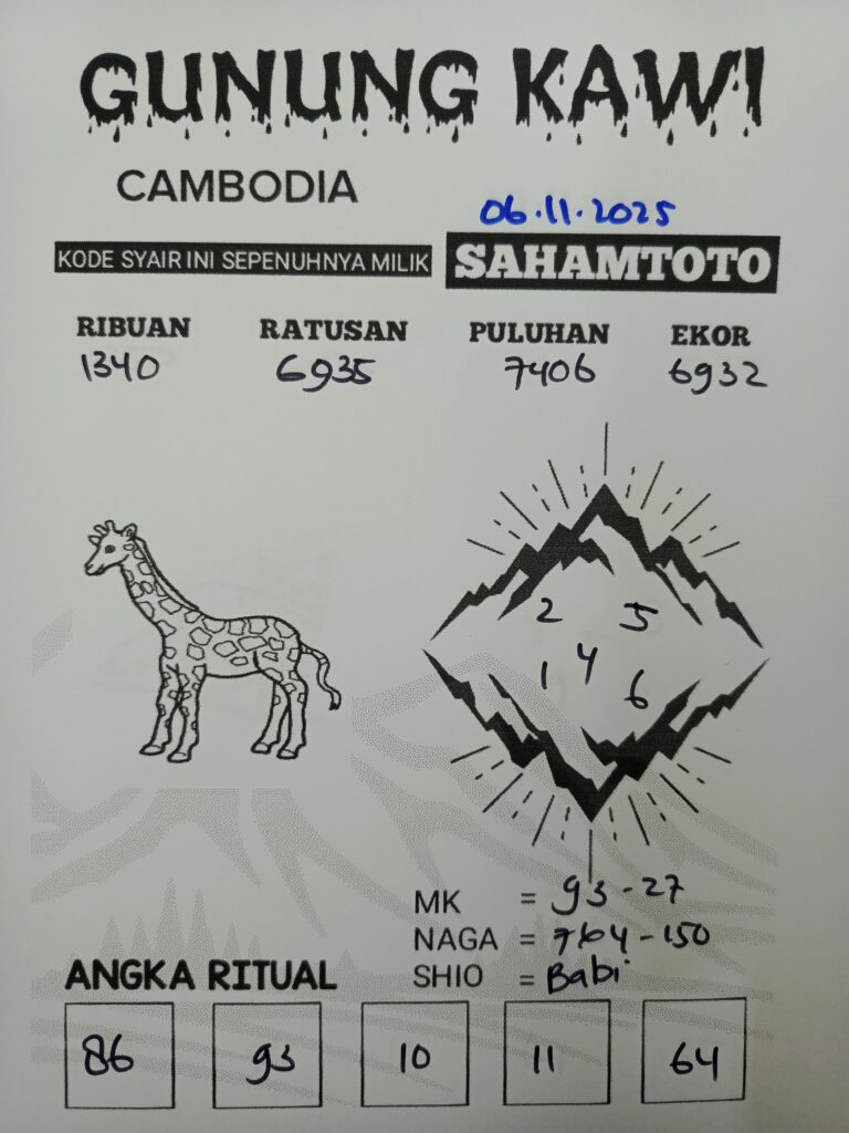 Syair Gunung Kawi CAMBODIA Pools Hari ini 06 November 2025