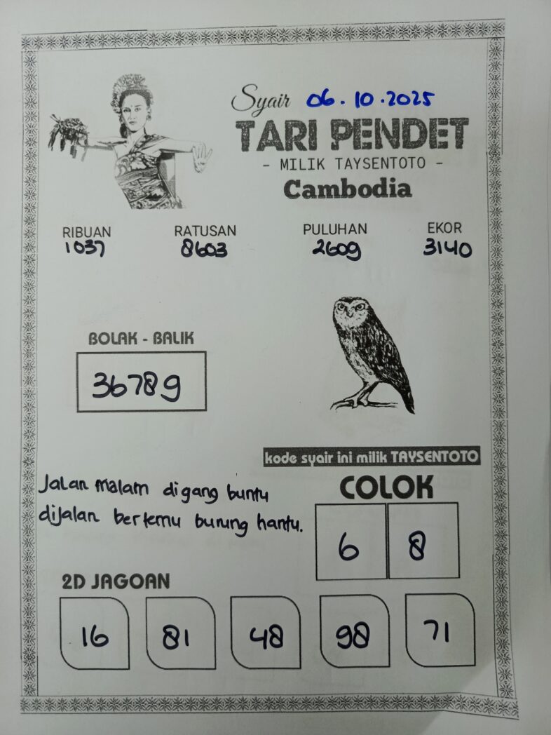 Syair Tari Pendet Cambodia Hari Ini Senin, 06 Oktober 2025