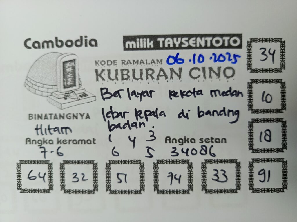 Syair Kuburan Cino Cambodia Hari Ini Senin, 06 Oktober 2025