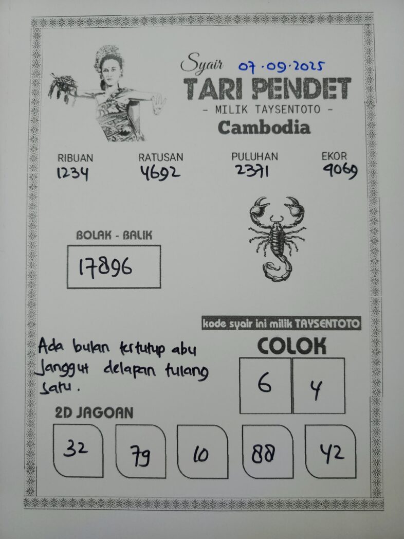 Syair Tari Pendet Cambodia Hari Ini Minggu, 07 September 2025