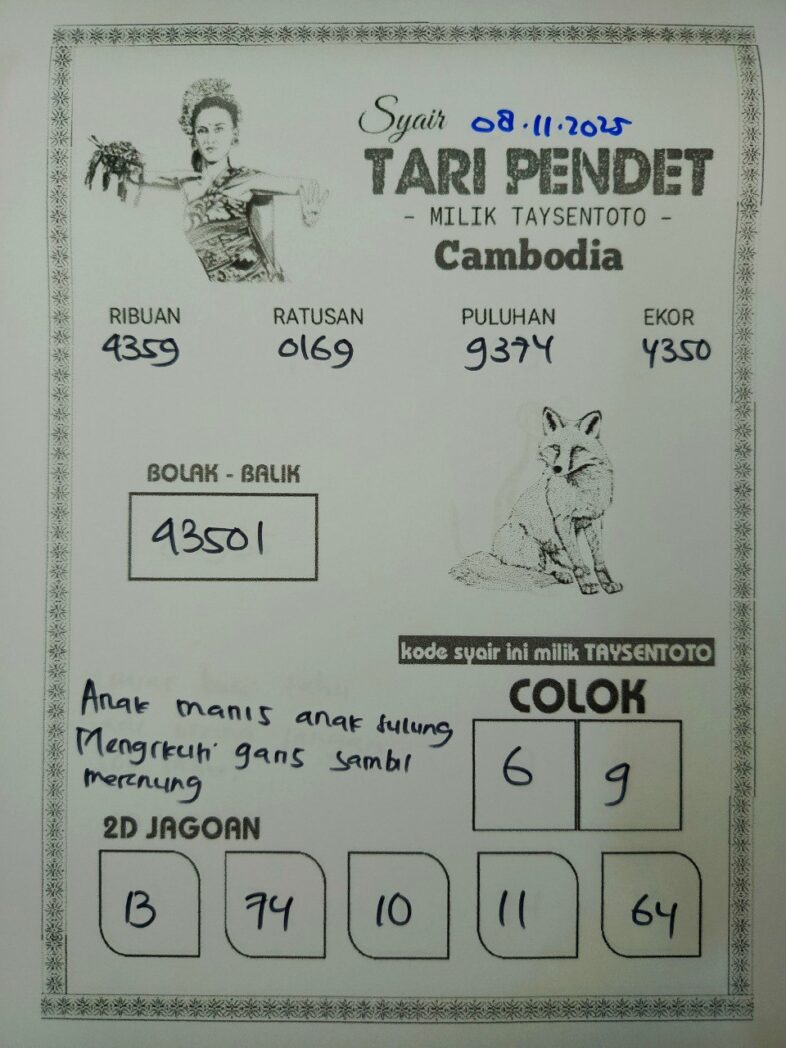 Syair Tari Pendet Cambodia Hari Ini Sabtu, 08 November 2025