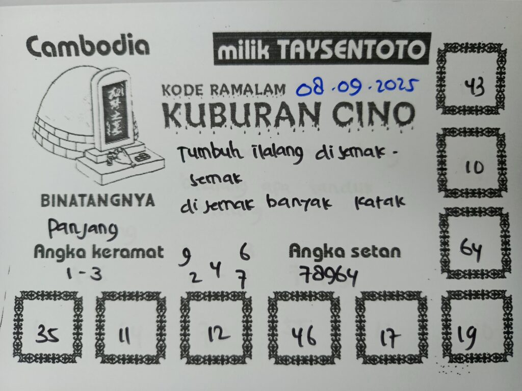 Syair Kuburan Cino Cambodia Hari Ini Senin, 08 September 2025