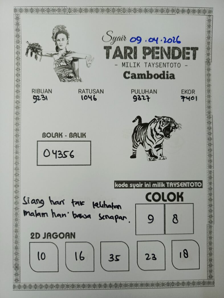 Syair Tari Pendet Cambodia Hari Ini Kamis, 09 April 2026