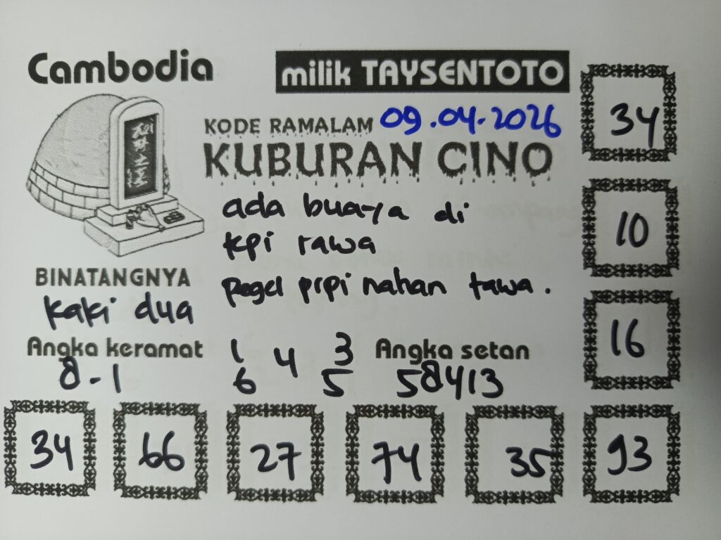 SYAIR TAYSEN CAMBODIA– Selamat datang di Situs Prediksi Togel Jitu dan Terpercaya. Hari ini kita akan mengulas Syair Togel Cambodia 09 April 2026. Syair Cambodia ini semata-mata hanya dibuat untuk membantu mempermudah para pemain toto gelap online dalam menebak secara tepat Angka Keluaran Cambodia.