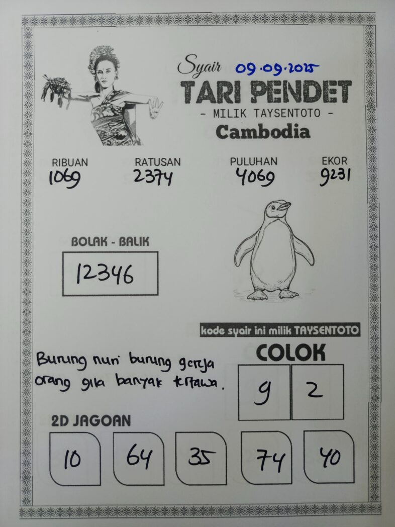 Syair Tari Pendet Cambodia Hari Ini Selasa, 09 September 2025