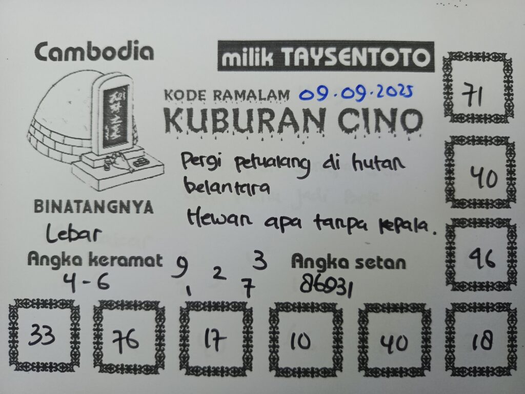 Syair Kuburan Cino Cambodia Hari Ini Selasa, 09 September 2025