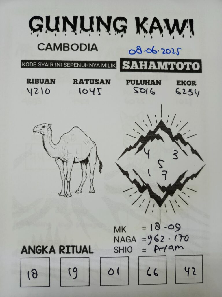 Syair Gunung Kawi Cambodia Pools Hari ini MINGGU 08 Juni 2025