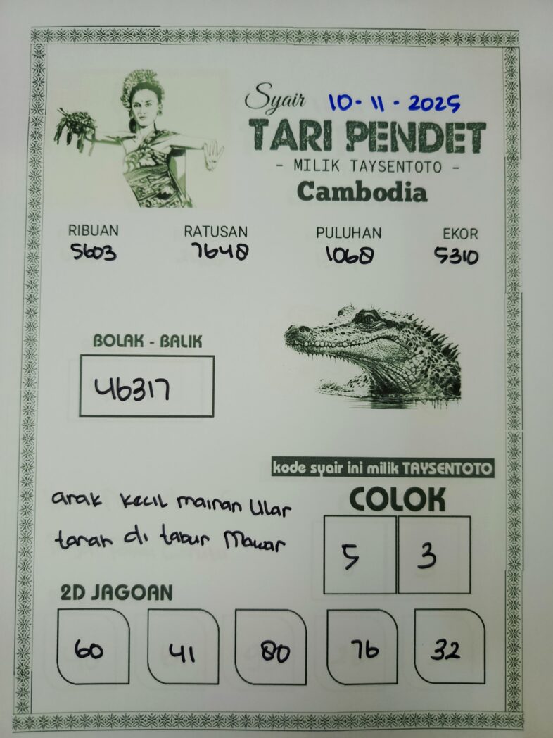 Syair Tari Pendet Cambodia Hari Ini Senin, 10 November 2025