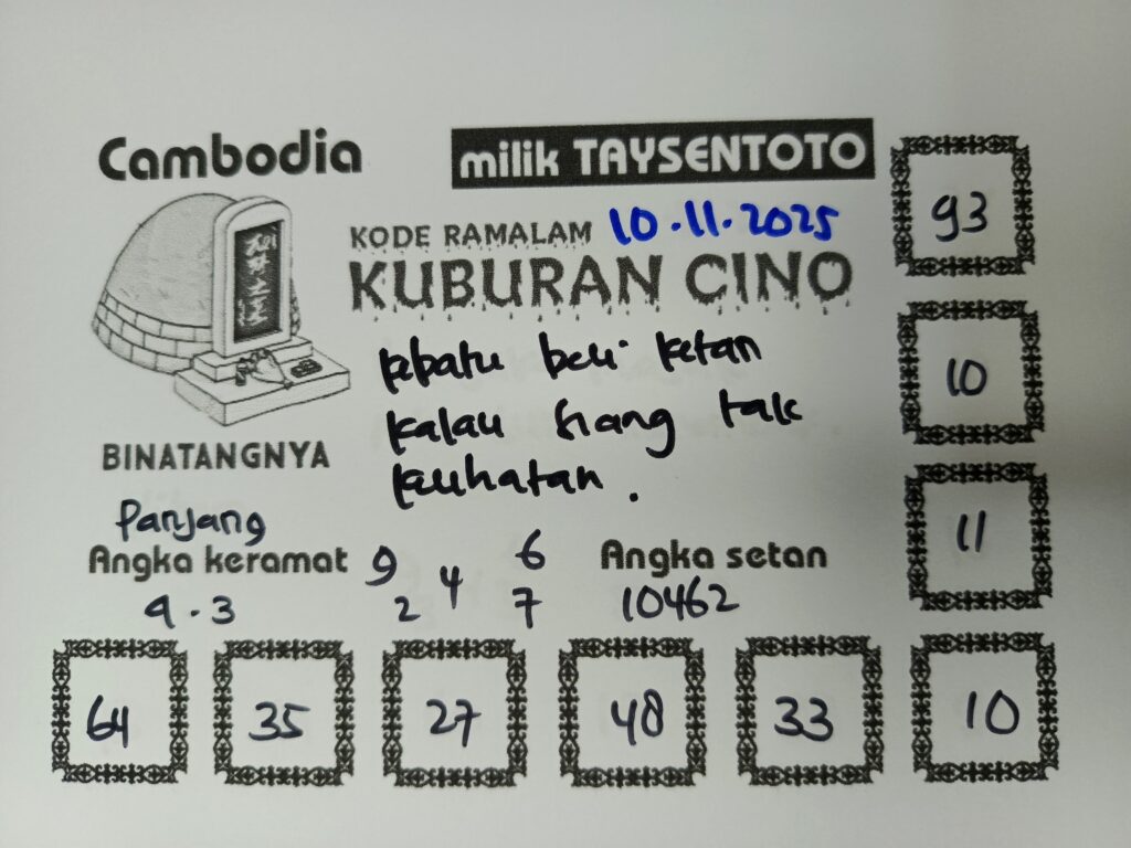 Syair Kuburan Cino Cambodia Hari Ini Senin, 10 November 2025