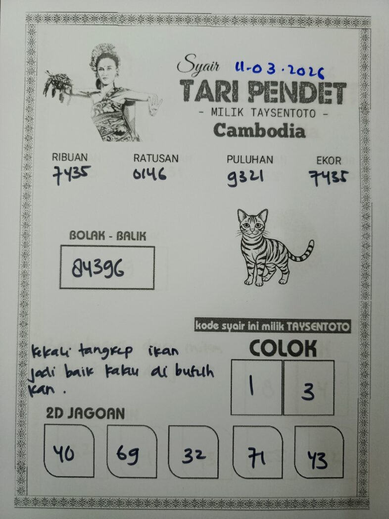 Syair Tari Pendet Cambodia Hari Ini Rabu, 11 Maret 2026