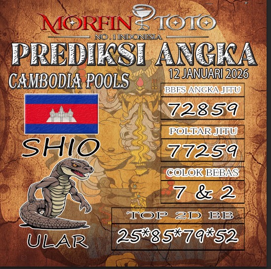 Syair lipan sakti Cambodia Pools Hari ini Senin 12 Januari 2026
