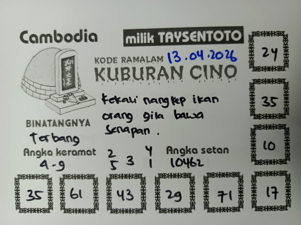 Syair Kuburan Cino Cambodia Hari Ini Senin, 13 April 2026